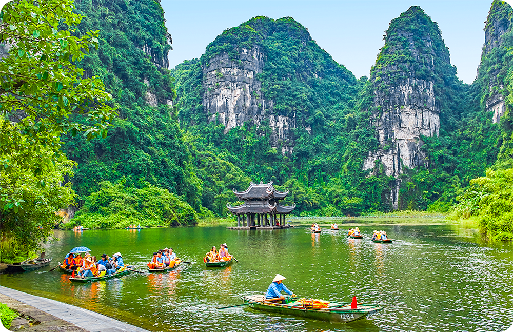 하노이에서 약 2시간 거리에 위치한 베트남 북부에 위치한 곳으로, 인상적인 석회암 카르스트 지형을 배경으로 숨막히는 자연 풍경을 선사합니다.
