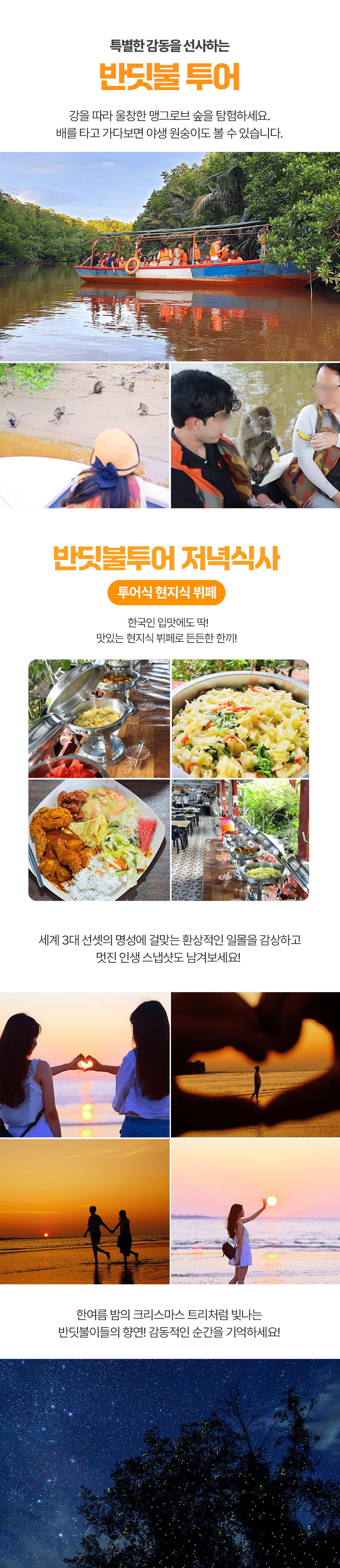 강을 따라 울창한 맹그로브 숲을 탐험하세요 ! 배를 타고 가다보면 야생원숭이도 볼 수 있습니다.