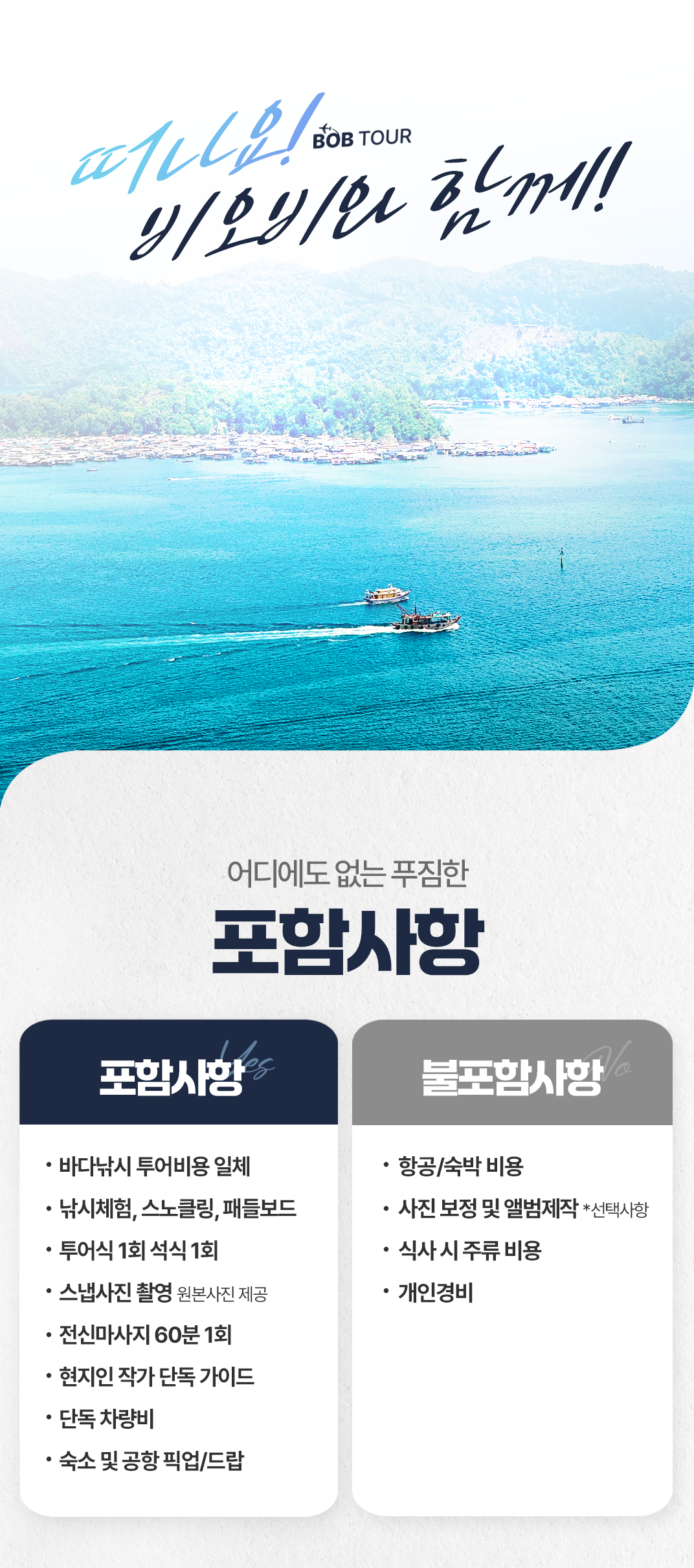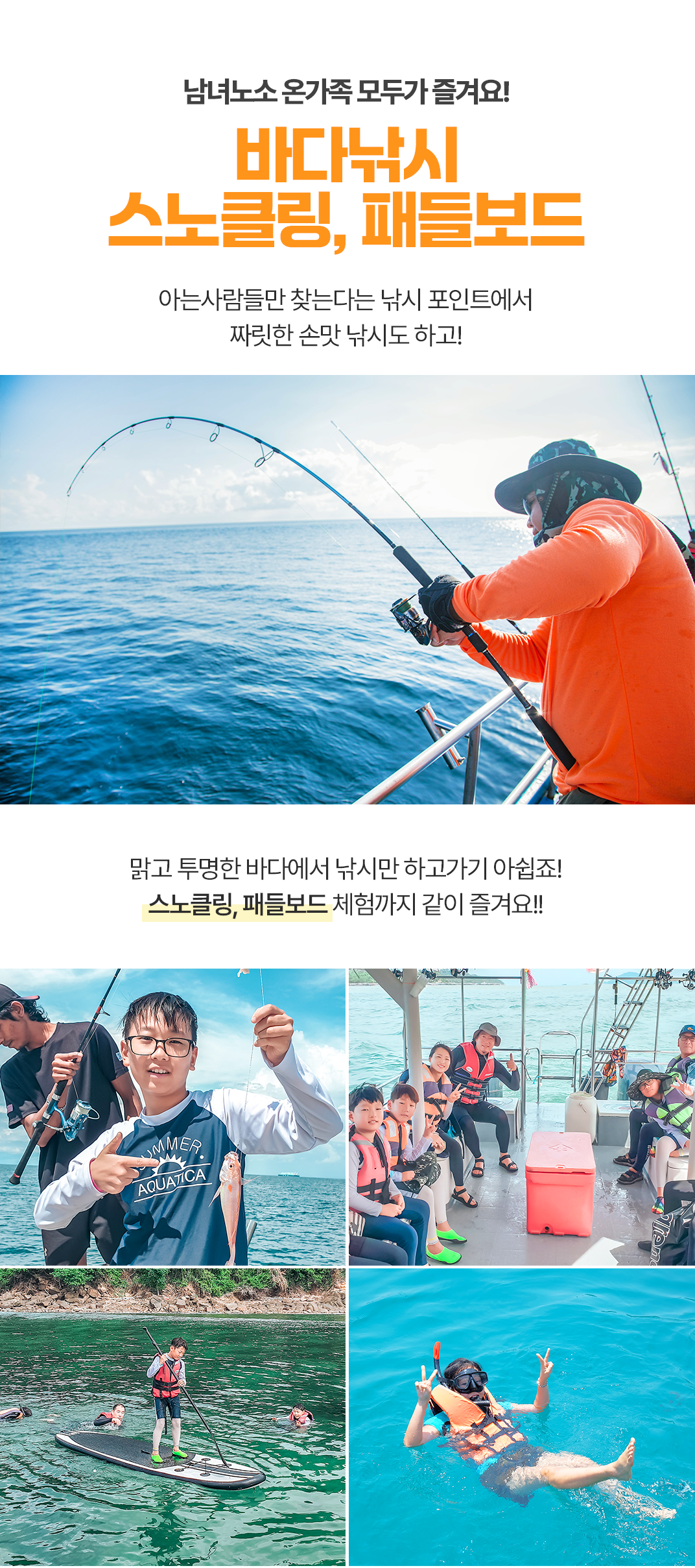 🏝️바다 위에서 즐기는 액티비티 아는사람들만 찾는다는 낚시 포인트에서 짜릿한 손맛 낚시도 하고! 스노쿨링, 패들보드까지 함께 즐겨요~