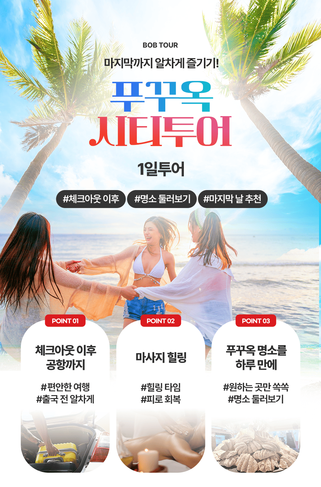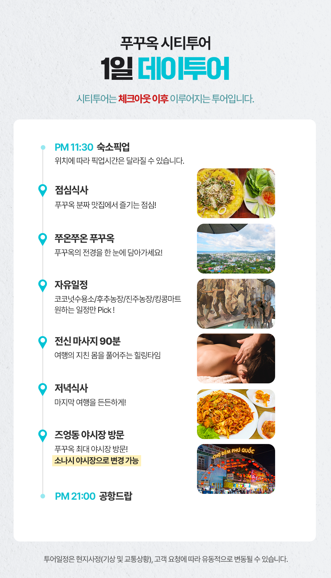 📢 푸꾸옥 시티투어는 체크아웃 이후 이루어지는 투어로, 원하는 일정을 조율해서 하루에 푸꾸옥 명소를 둘러보는 일정입니다.