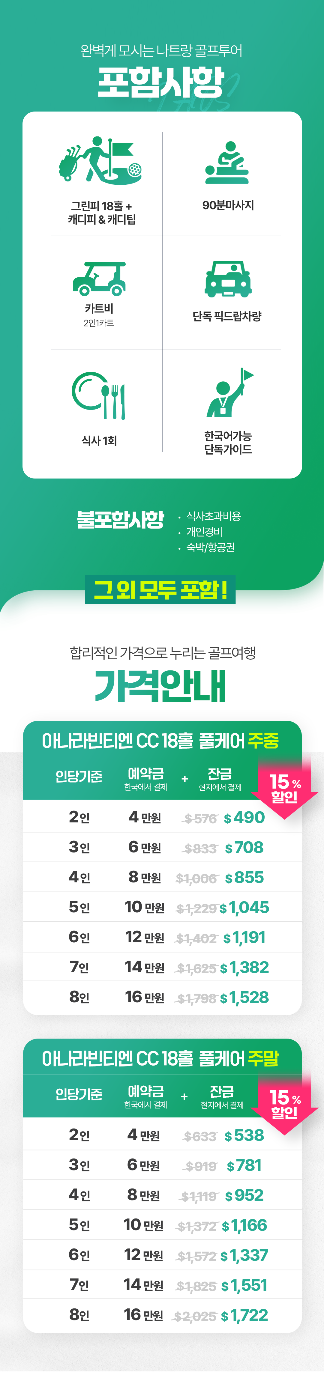 📍1일 데이투어 | 아나라빈티엔 18홀 풀케어투어(주중)