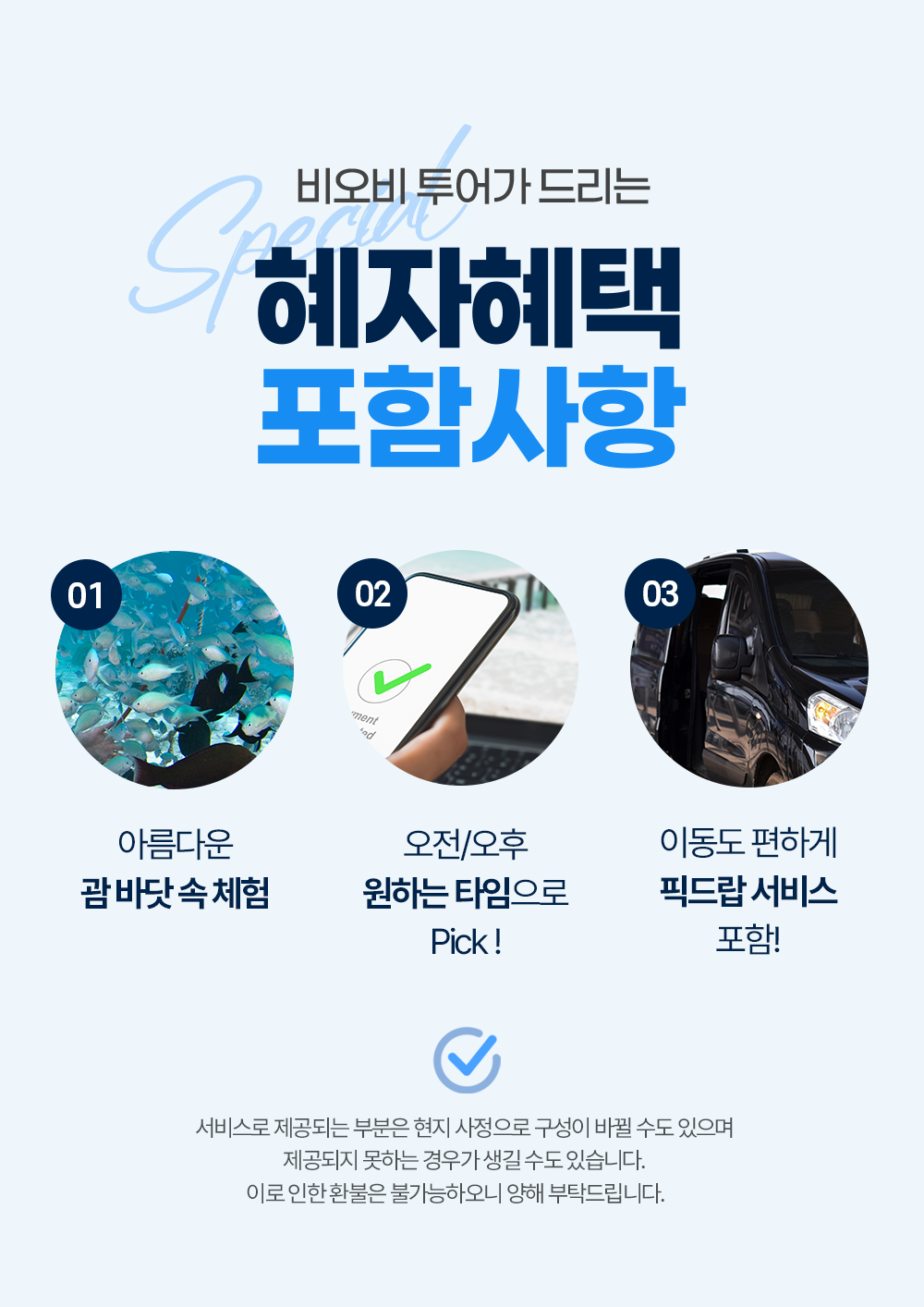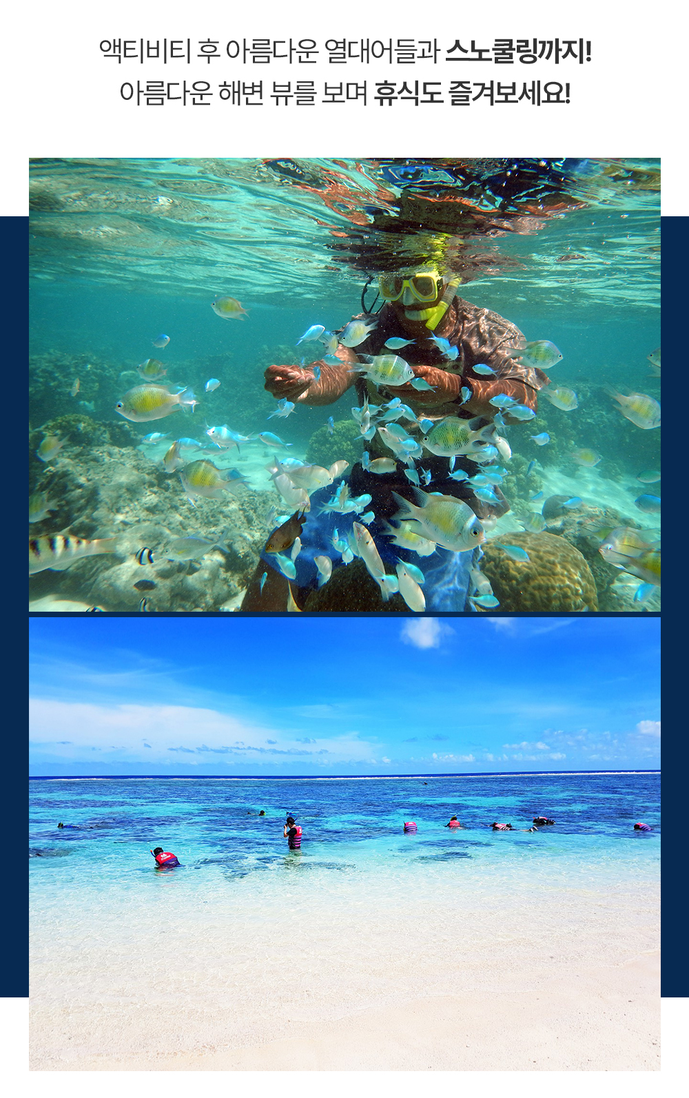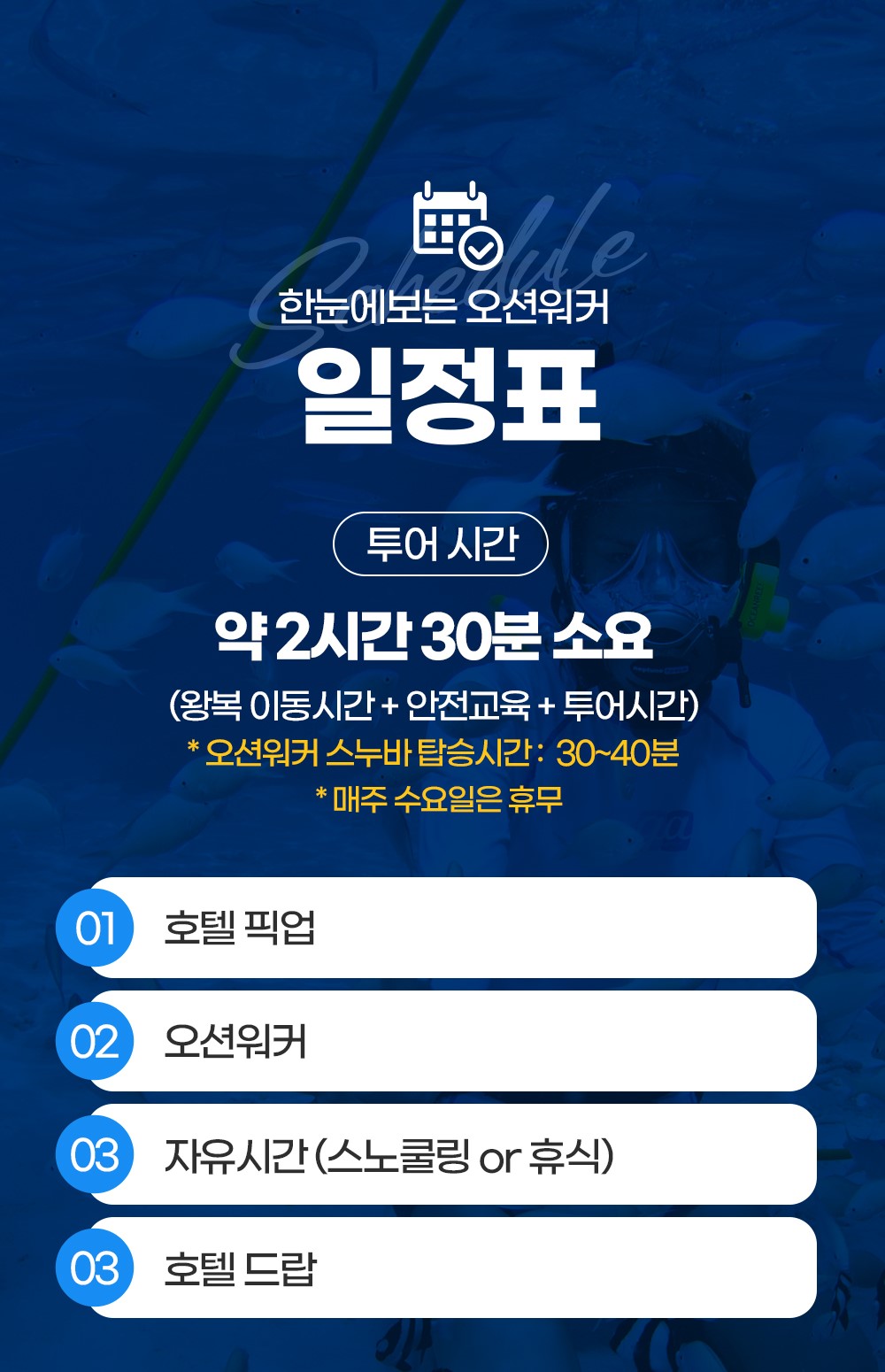 픽업 → 오션워커→ 자유시간(스노쿨링 OR 휴식) → 호텔드랍
