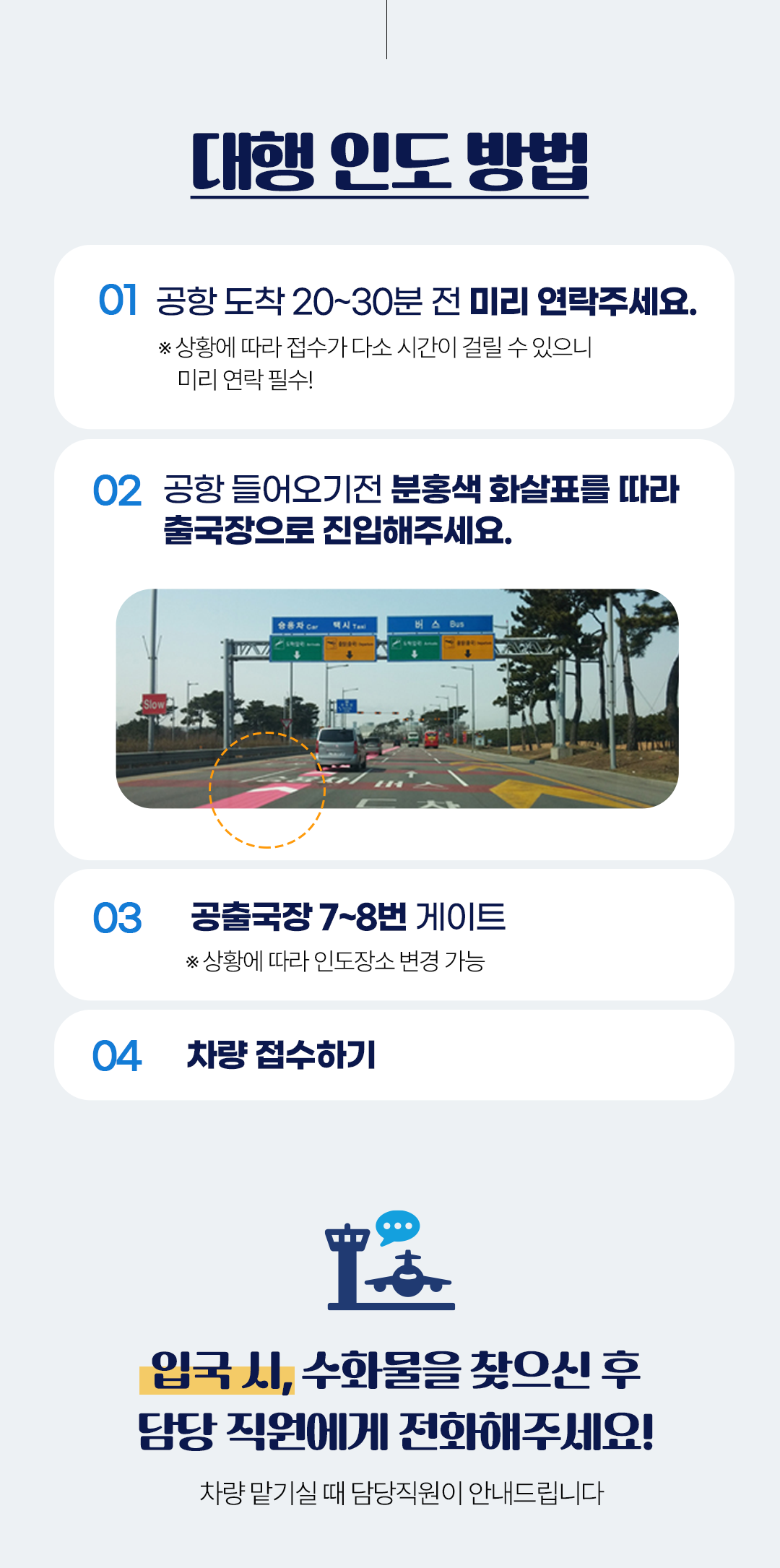 * 공항 도착 20~30분 전 미리 연락주세요.