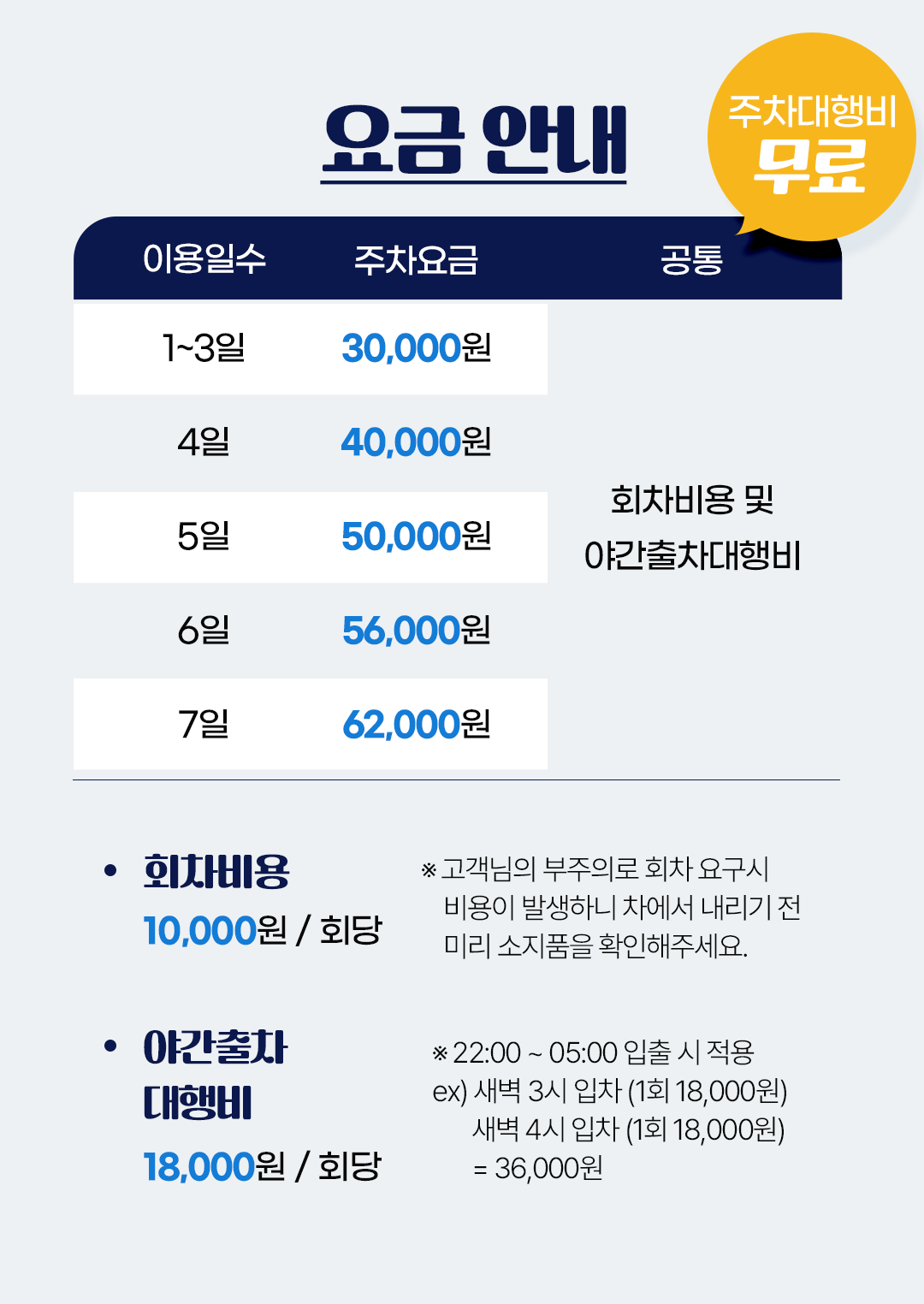 - 야간 출차 대행비 18,000원