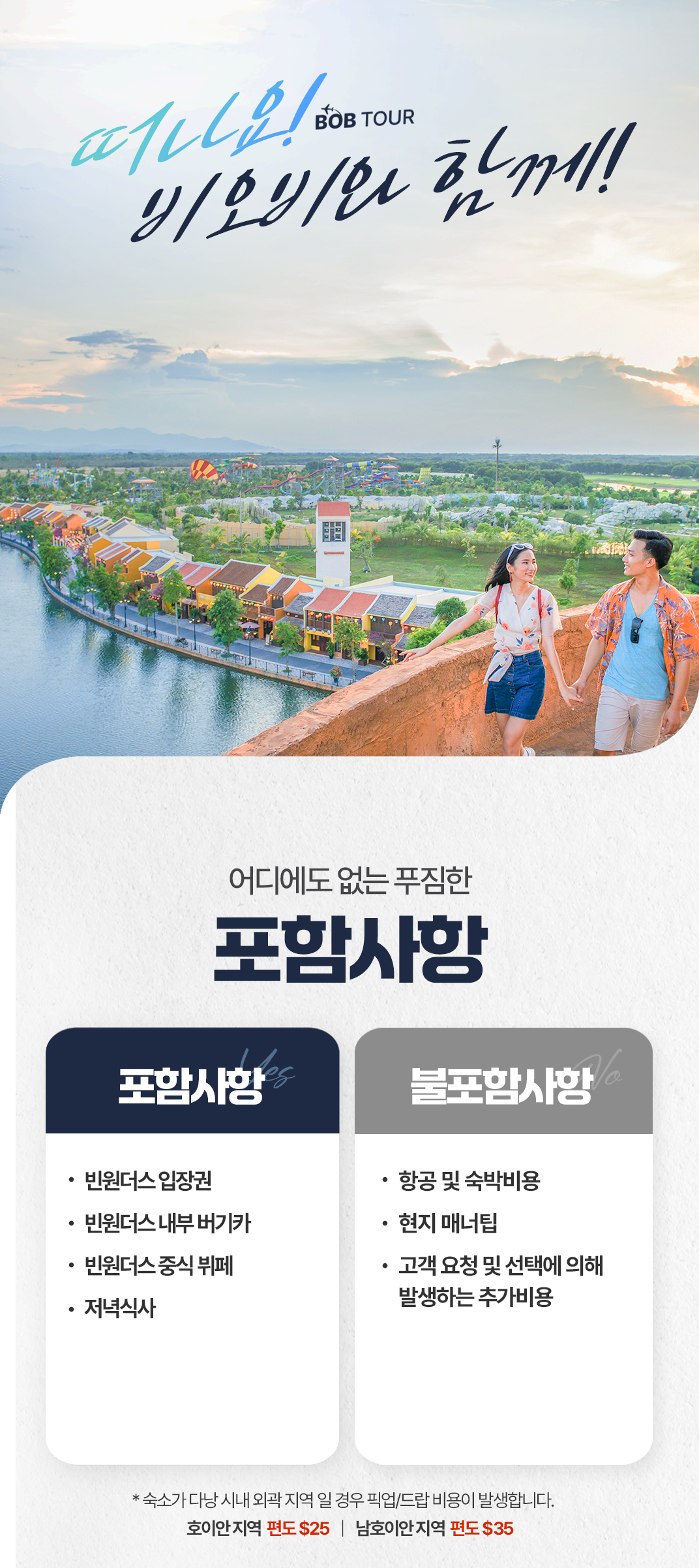 - 숙소가 다낭시내 외곽지역 일 경우 추가비용(호이안지역 편도 $25 / 남호안 지역 편도 $35)