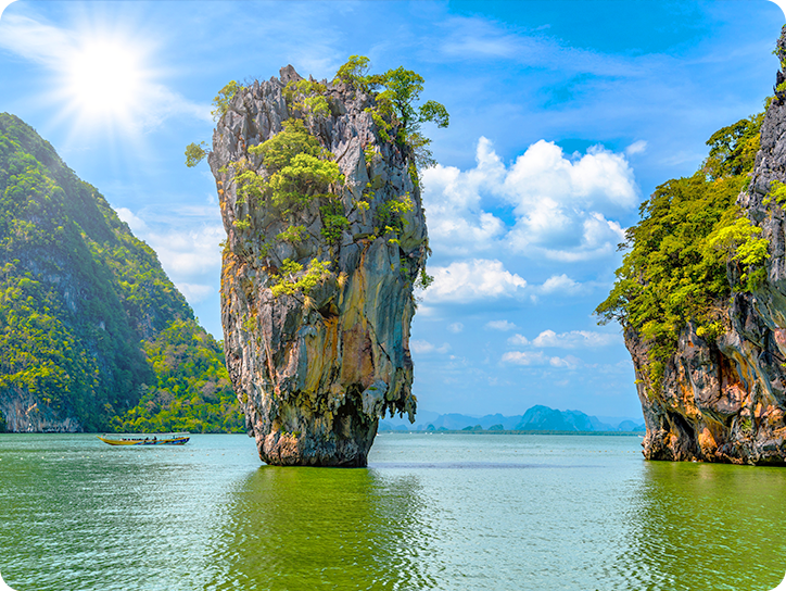 픽업(08:00) → 선착장>팡아만 해양 국립 공원 이동 → 파낙섬/홍섬 카누 투어→ 점심식사(현지식) → 제임스본드 섬 자유시간 →선착장 복귀(16:00) →타이마사지 2시간 →저녁식사(RAYA또는 원춘레스토랑) →센트럴 백화점 방문 → 숙소 드랍