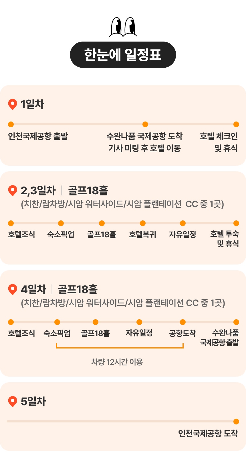 - 일정상 송영차량 ( 공항 <> 호텔 <> 골프장)