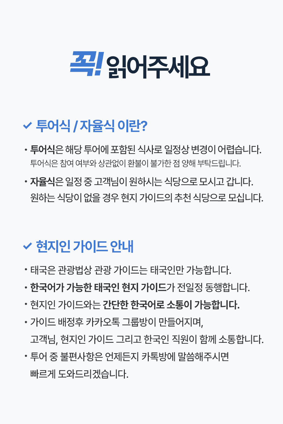 * 투어식은 투어 자체에 포함된 패키지 식사로 환불 및 변경 할 수 없습니다.