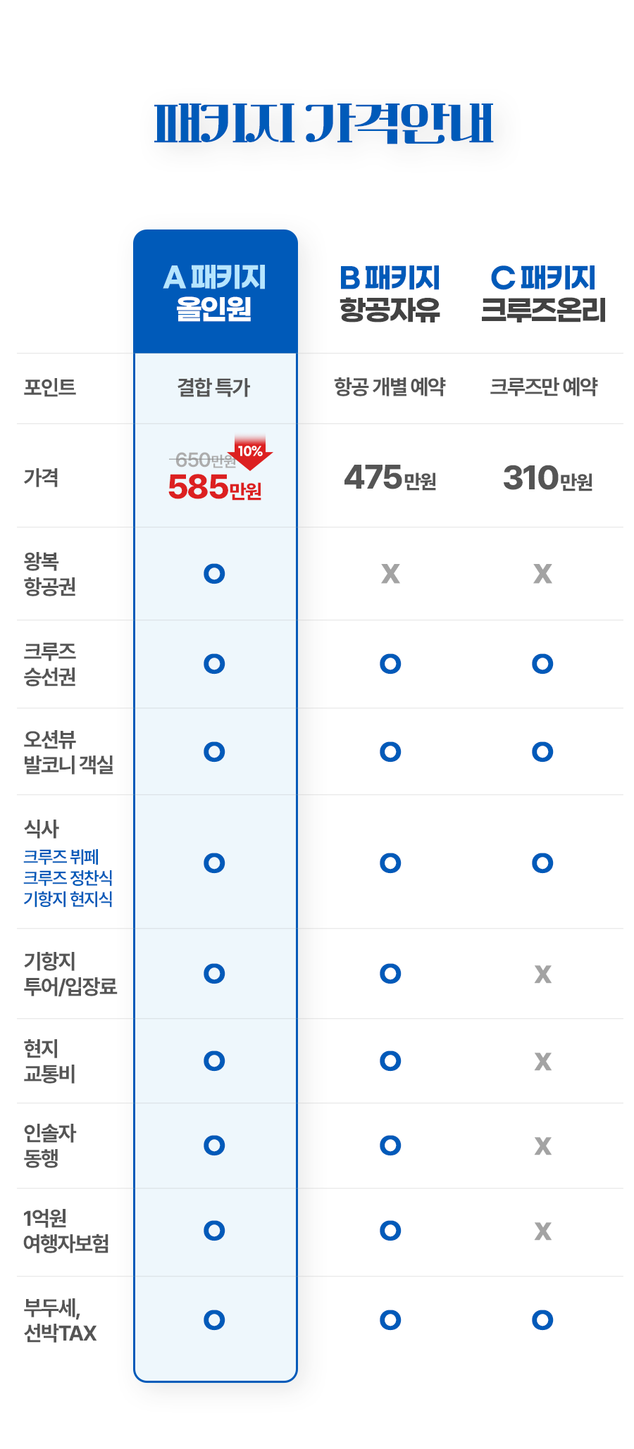 식사 조식-크루즈 뷔페, 중식-현지식, 석식-크루즈 정찬식