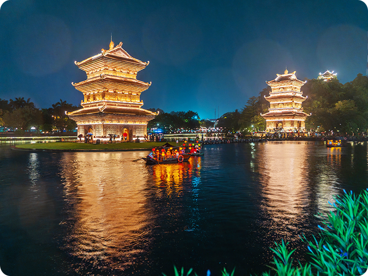 픽업(09:00) → 호아루고대수도 → 중식(자율식) → 짱안 나룻배 비경유람 → 항무아전망대 → 전신마사지 90분 → 석식(투어식) → 닌빈구시가지야경 → 숙소드랍(21:00)