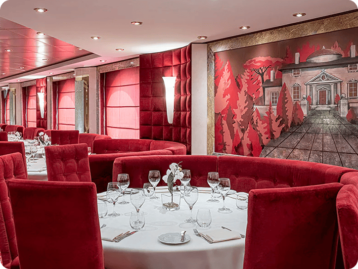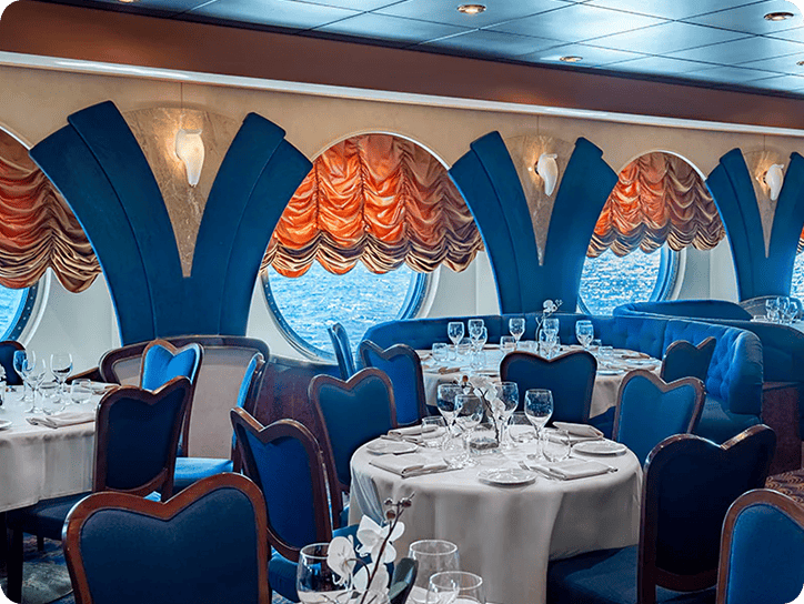 * 크루즈 정찬(다이닝) 운영시간이 정해진 1~2부제 처럼 운영, 예약된 시간에 맞춰 입장 후 웨이터가 주문을 받고 서빙해주는 풀코스 서비스입니다.