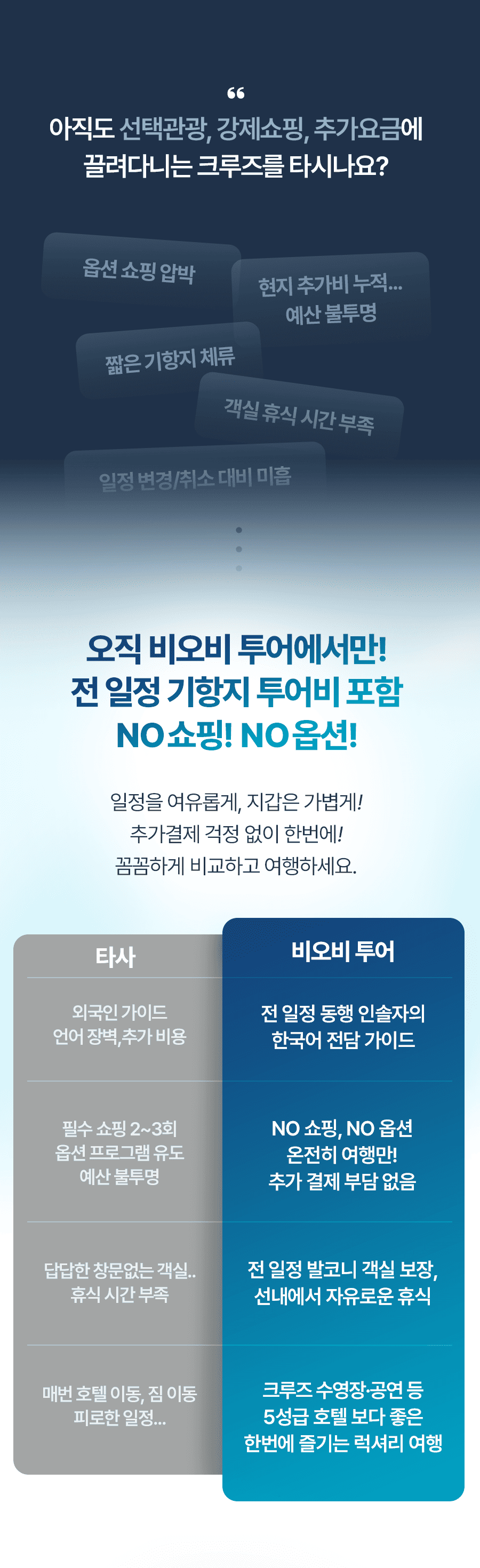 - 기타 선내 개인지출 비용 (면세점, 카지노, 생수, 주류 등)