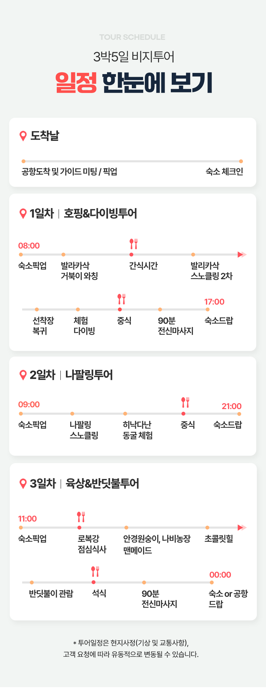 📢 항공편 시간에 따라 마사지가 제외 된 일정으로 안내 드릴 수 있습니다.