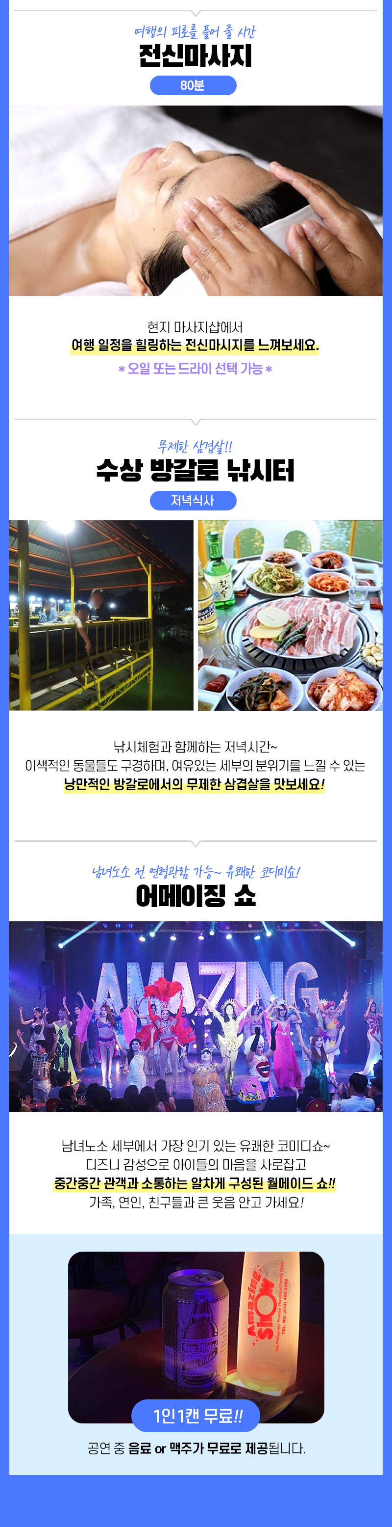 무료제공 선상라면, 맥주, 망고 제공, 전신마사지 90분 (오일 또는 드라이 선택 가능)