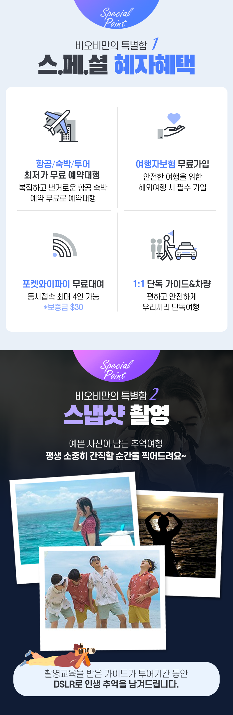 무료제공 수영장강습, 실전 스쿠버 체험다이빙, 수중 사진 촬영, 어메이징 공연 티켓 및 공연 중 1인 1음료 무료 제공, 전신마사지 90분 (오일 또는 드라이 선택 가능)