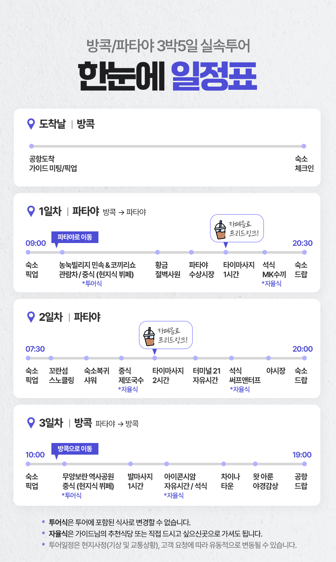 파타야의 주요 명소와 활동을 빠짐없이 즐길 수 있는 알찬 일정입니다!