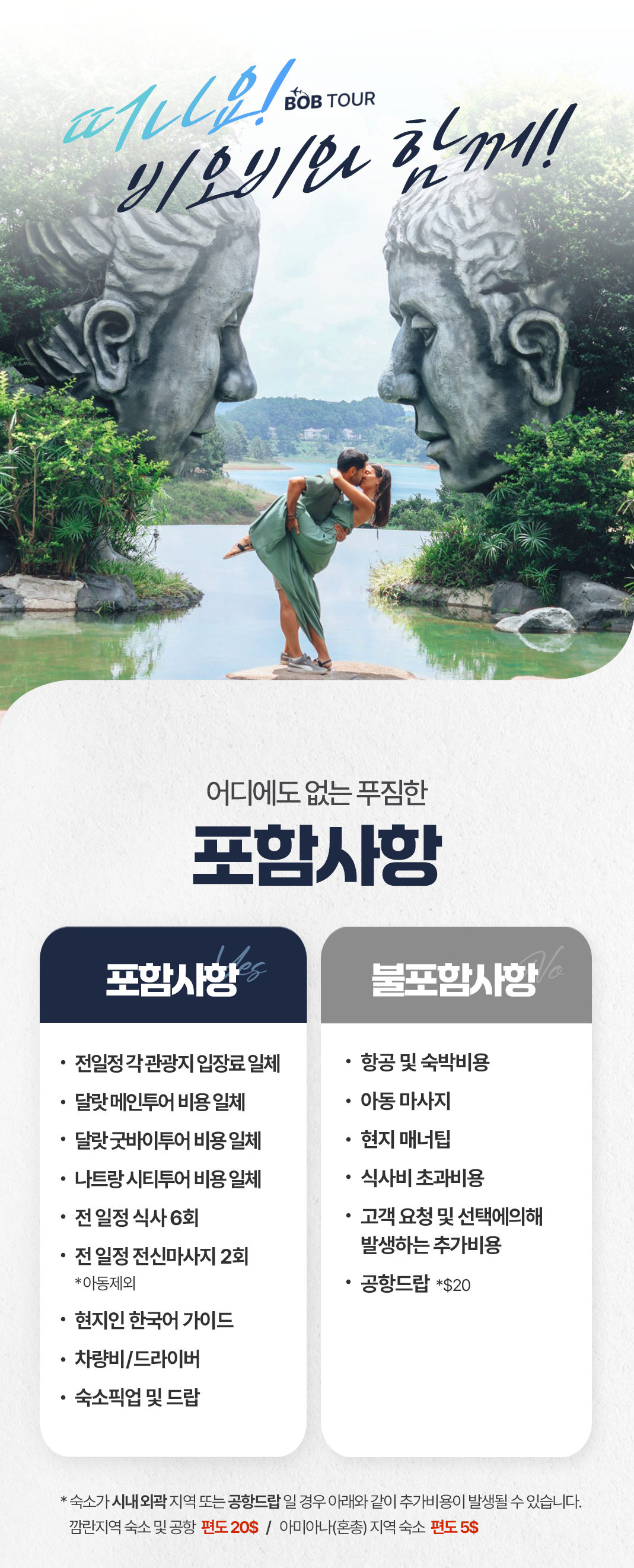 📢 나트랑 시내 숙소 기준이며 깜란지역, 혼총지역, 빈펄섬 지역은 픽드랍 추가금이 발생합니다.