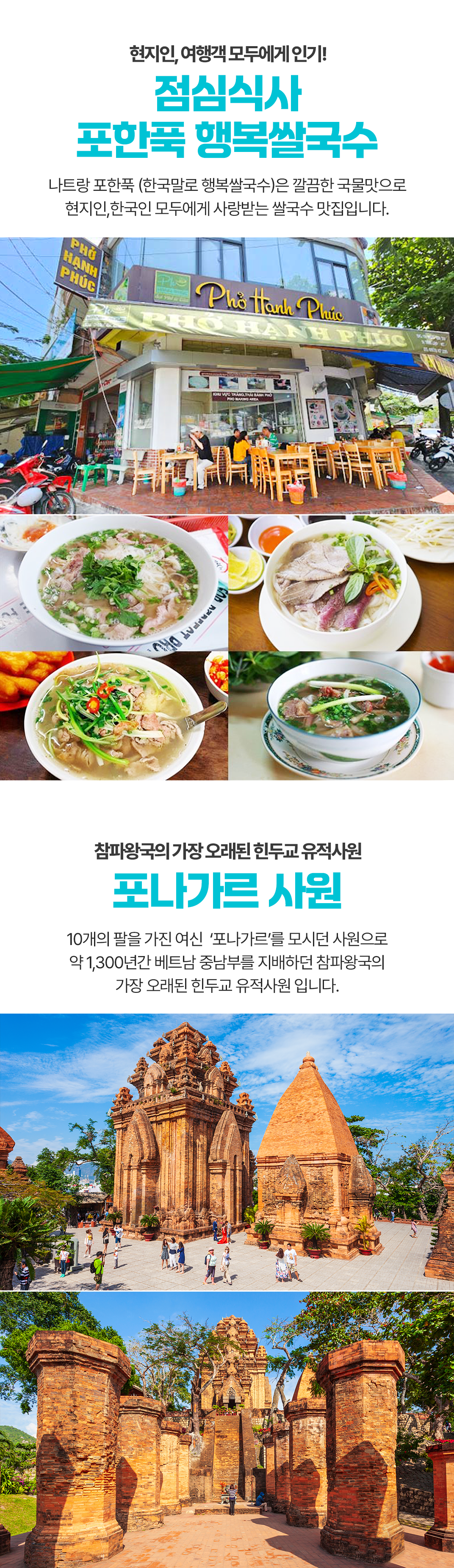 11:30 픽업→ 11:30~12:30중식(행복쌀국수) → 12:30~13:30 포나가르사원 → 13:30~ 14:00 나트랑 대성당→ 14:00 ~ 15:00롱선사→15:00~18:00담시장 및 롯데마트 쇼핑→18:30리조트 드랍