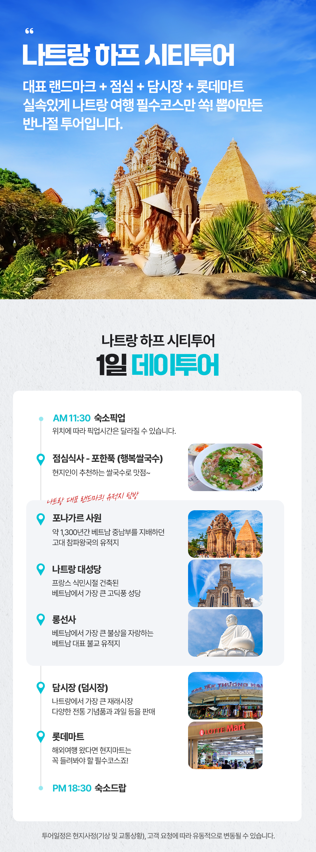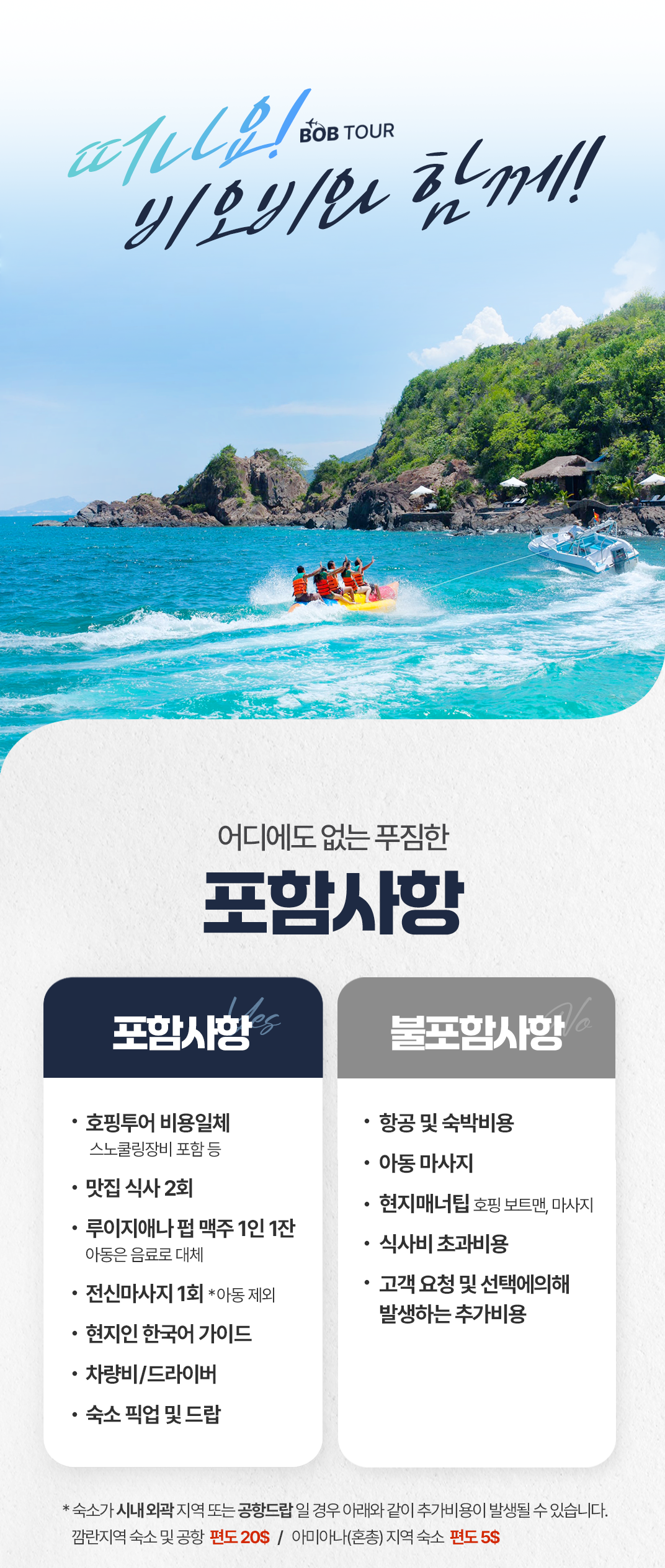 📢 나트랑 시내 숙소 기준이며 깜란지역, 혼총지역, 빈펄섬 지역은 픽드랍 추가금이 발생합니다.