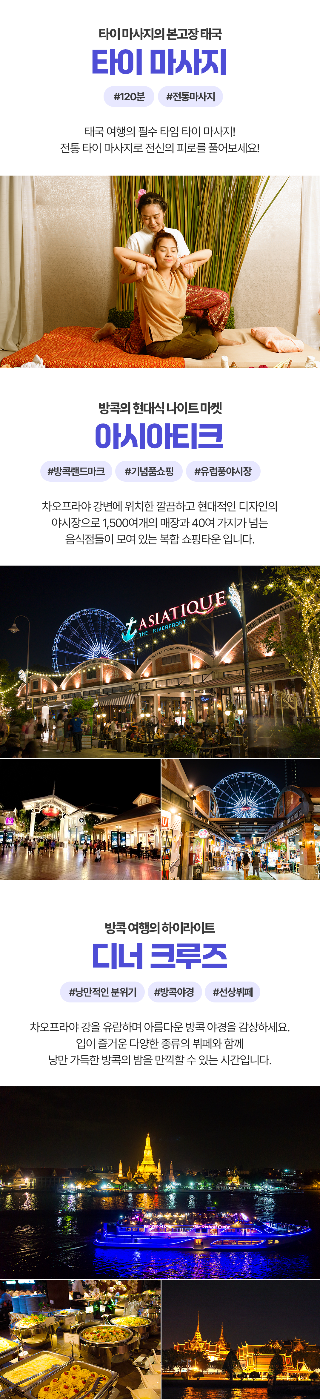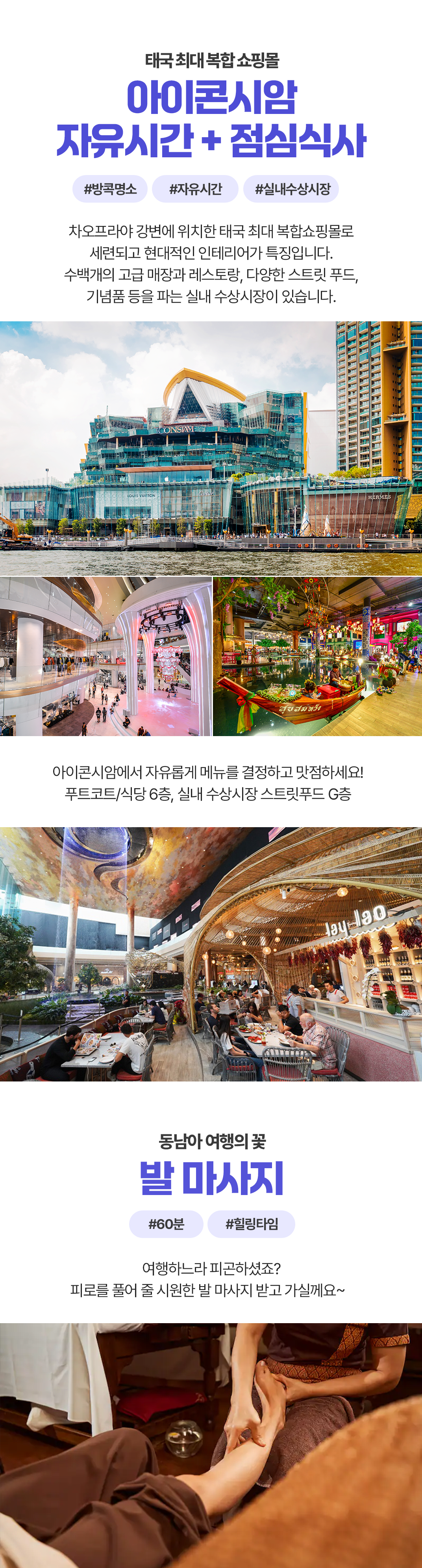 마지막 날까지 알차게! 태국 최대 복합 쇼핑몰인 아이콘시암과 감성 골목 투어, 마무리로 크루즈에서 아름다운 방콕의 뷰까지 감상하세요!