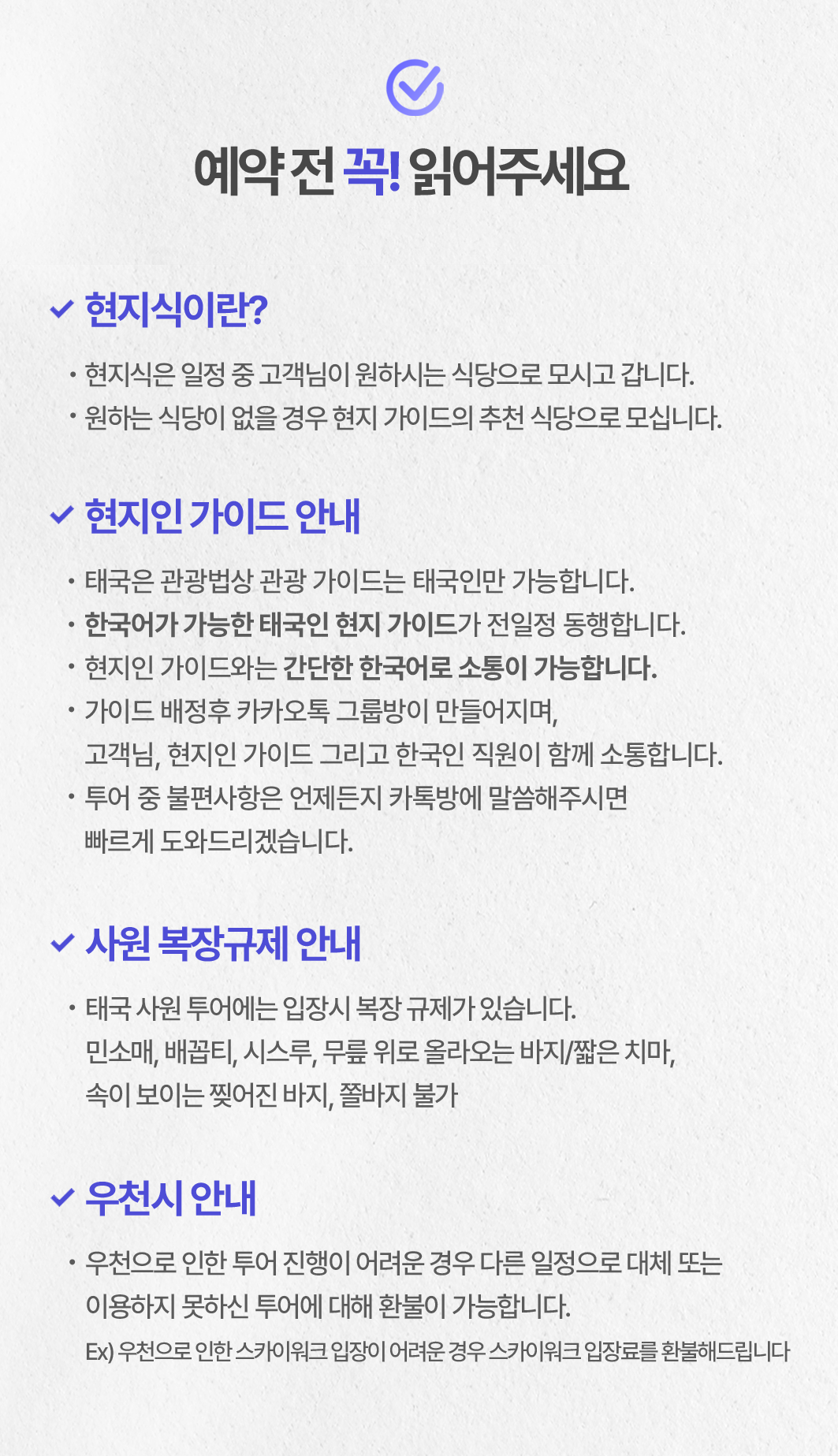 *복장규제있음 : 민소매, 배꼽티, 시스루, 반바지, 찢어진 바지, 쫄바지, 미니스커트(무릎을 가리는 롱 스커트는 가능)