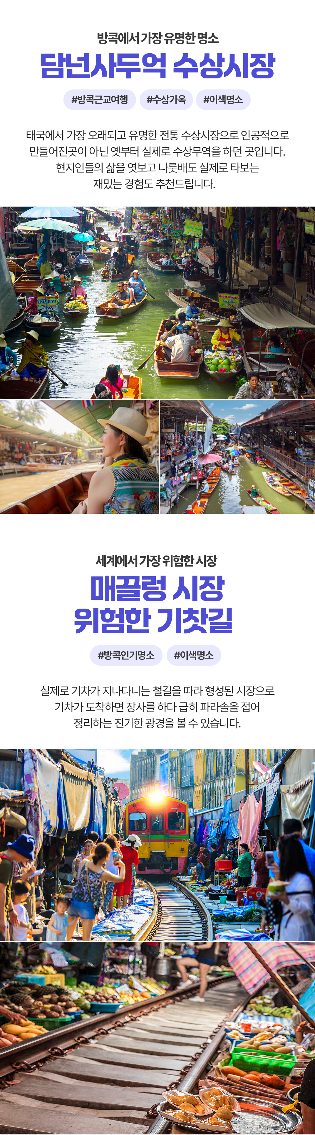방콕에서 가장 오래되고 유명한 담넌사두억 수상시장, 실제 철길에서 장사하는 매끌렁 위험한 기찻길 시장! 방콕 근교를 투어 해보세요!