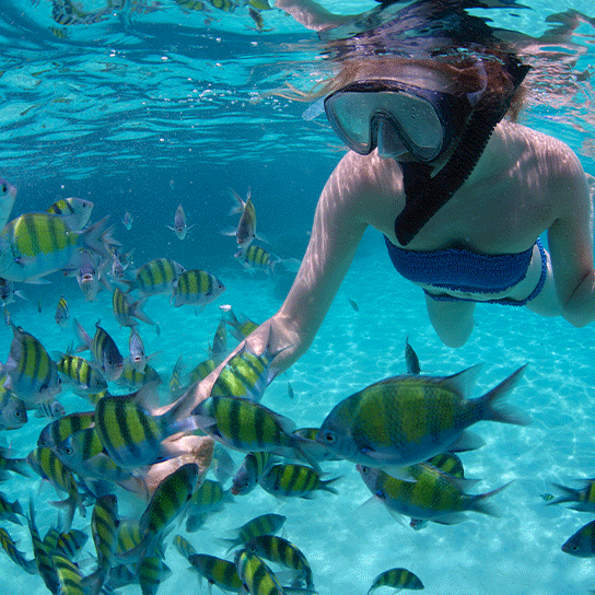 스피드보트를 타고 섬에 도착하여 여유로운 해변에서의 시간을 즐겨 보세요