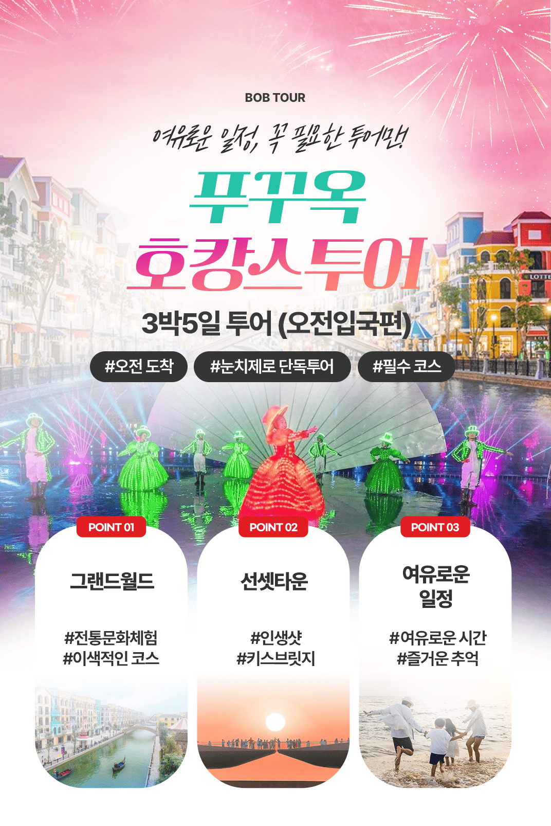 여유로운 일정 속에 선셋 타운과 불꽃놀이와 함께하는 낭만여행!