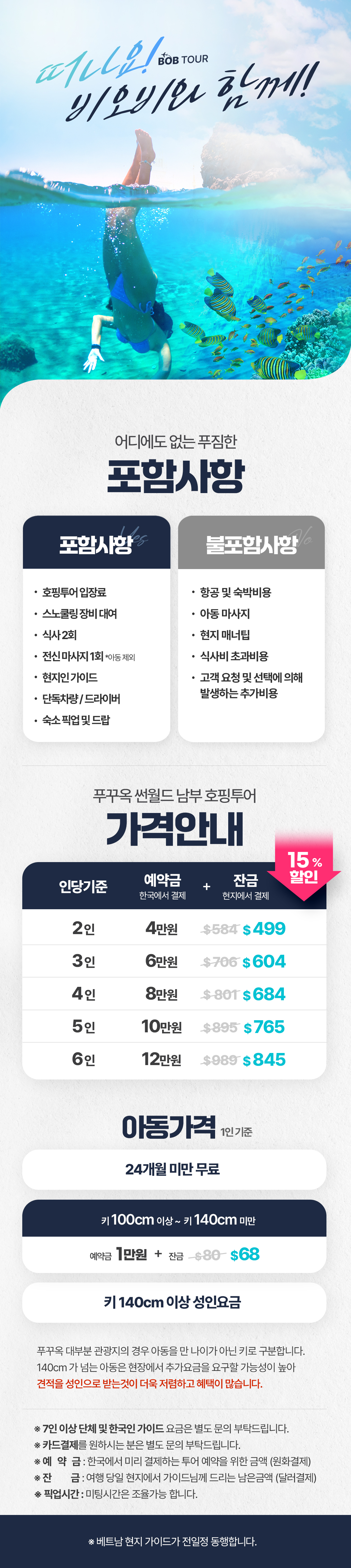 감기섬 / 메이룻섬 / 몽타이 섬 등 아름다운 푸꾸옥의 에메랄드 및 바다 스노쿨링 까지!