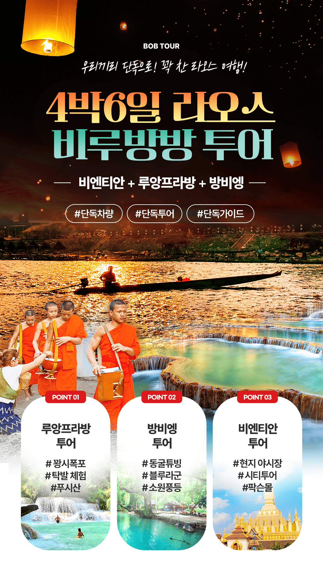 루앙프라방 탁발행사와 방비엥 대표 액티비티 즐기기!