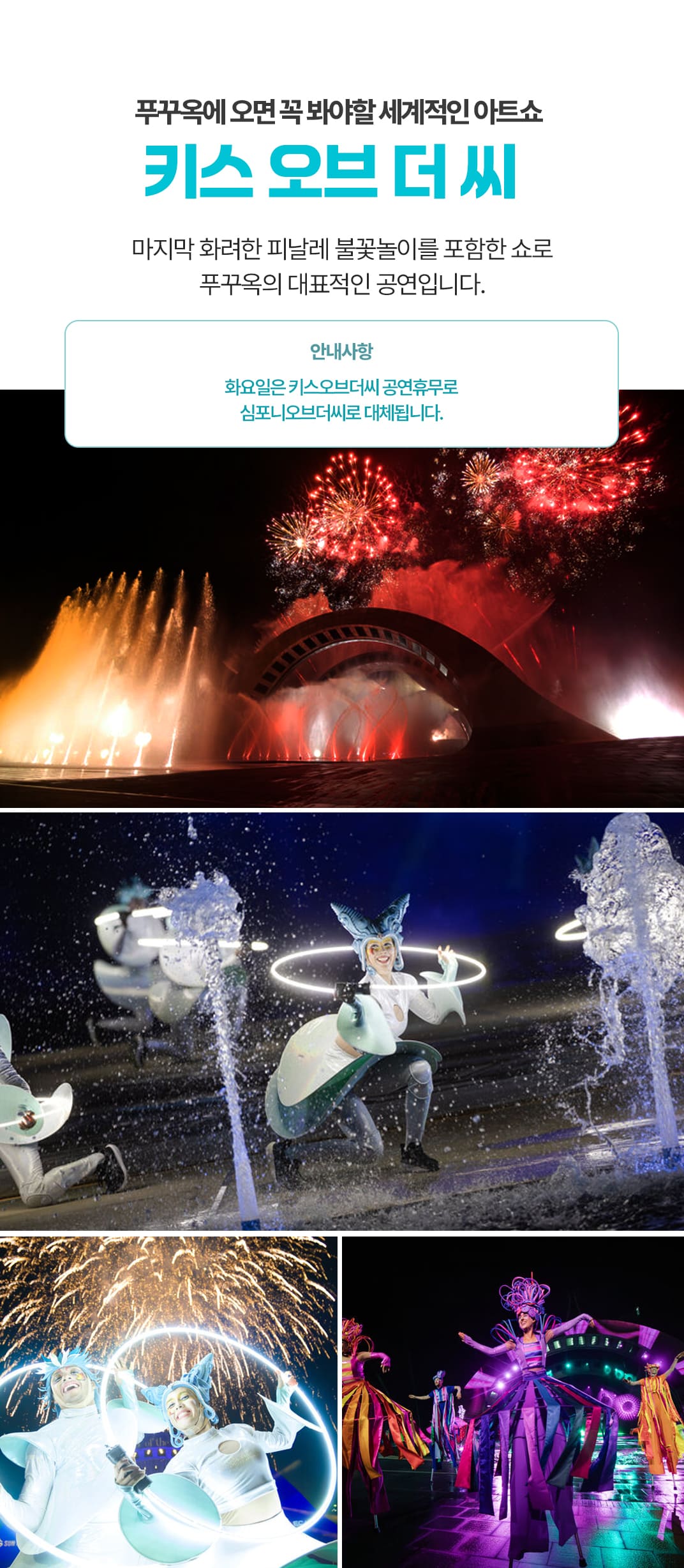 📢 화요일은 키스오브더씨 공연 휴무로 심포니오브더씨로 대체됩니다.