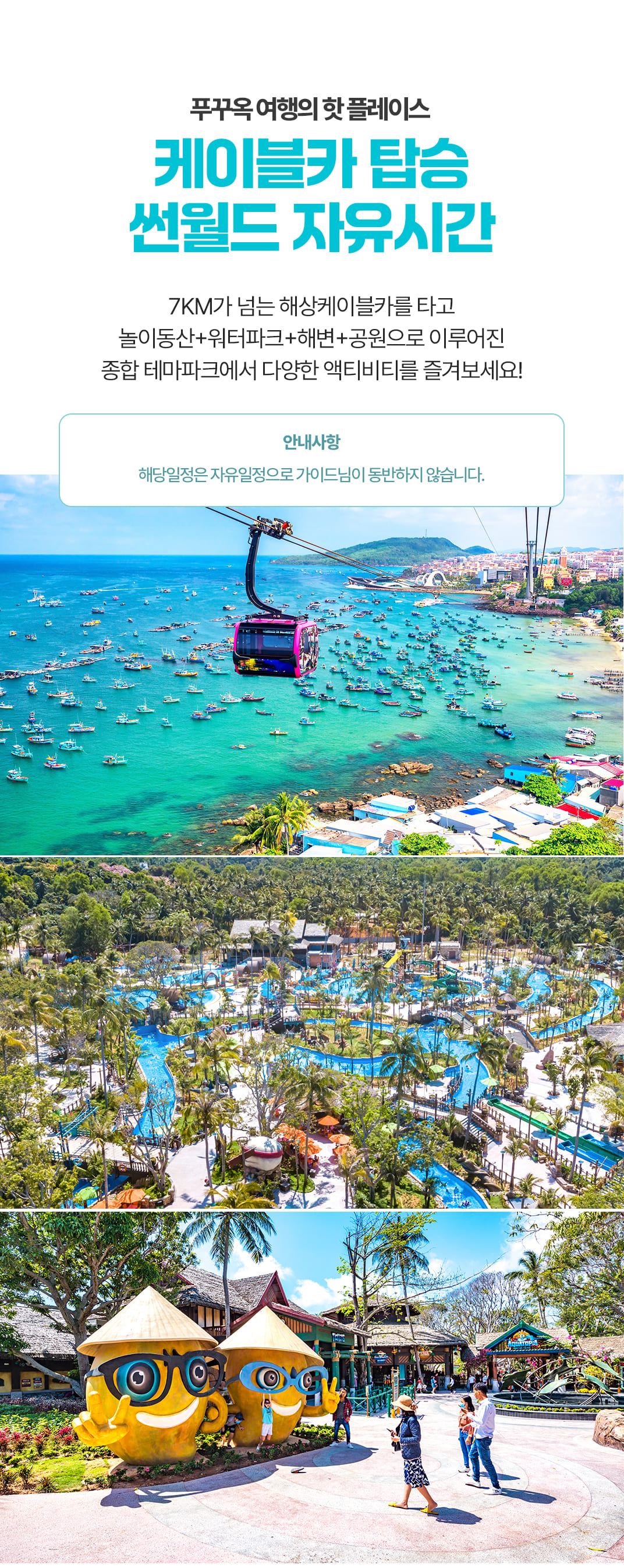 7KM가 넘는 해상 케이블카를 타고 종합 테마파크에서 다양한 액티비티를 즐겨보세요!