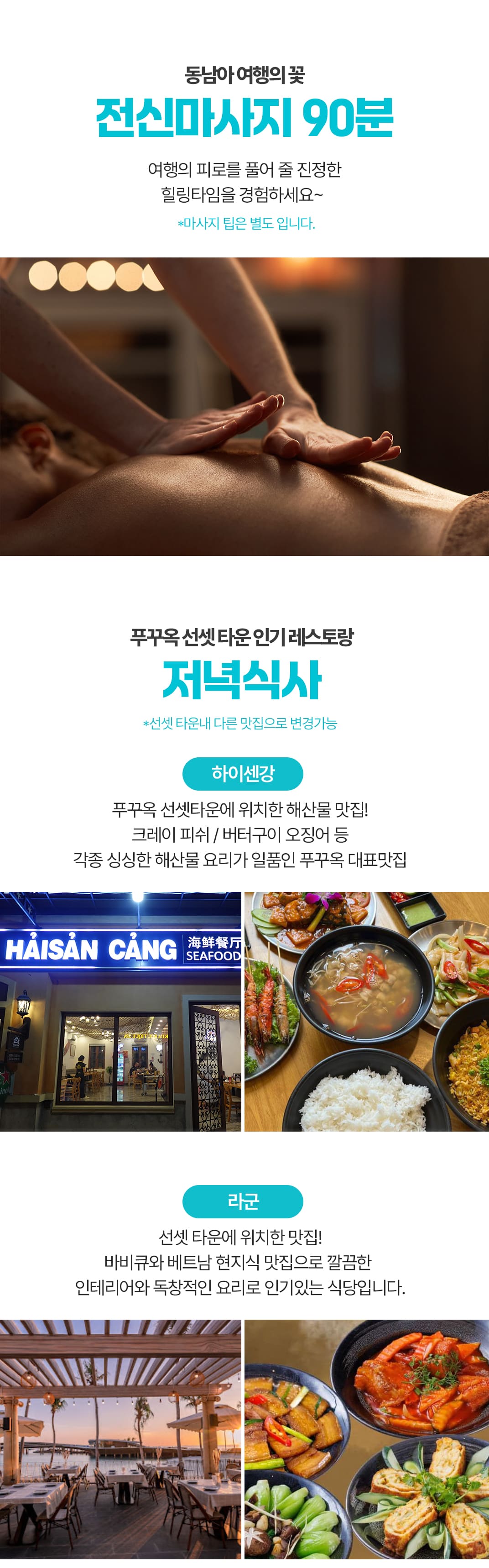 석식 자율식 - 하이센강 -크레이 피쉬,버터구이 오징어 등 해산물맛집 / 라군 -바비큐, 베트남 현지식 맛집 (포함) *변경가능