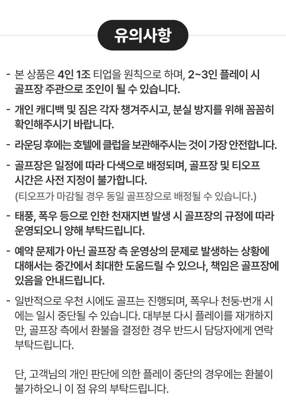 - 캐디팁 18홀 기준 1인당 400~500바트