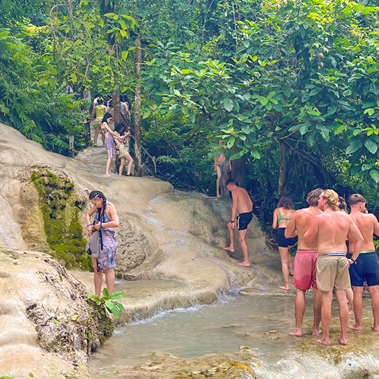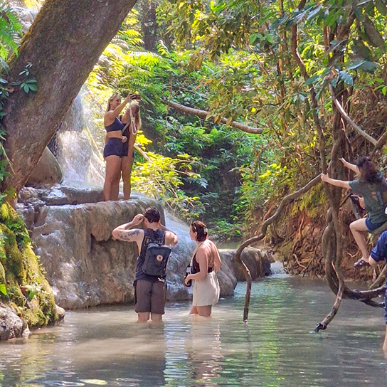 픽업(09:00)→부앙텅 폭포체험→ 점심식사→ 고양이카페→ 전통의상,사진촬영→ 전신마사지2시간→ 저녁식사→ 야시장→ 숙소드랍