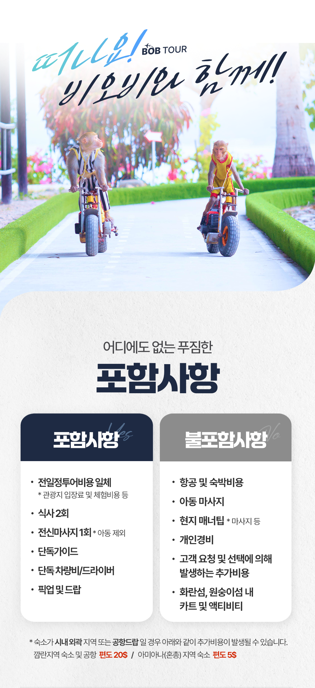 📢 나트랑 시내 숙소 기준이며 깜란지역, 혼총지역, 빈펄섬 지역은 픽드랍 추가금이 발생합니다.