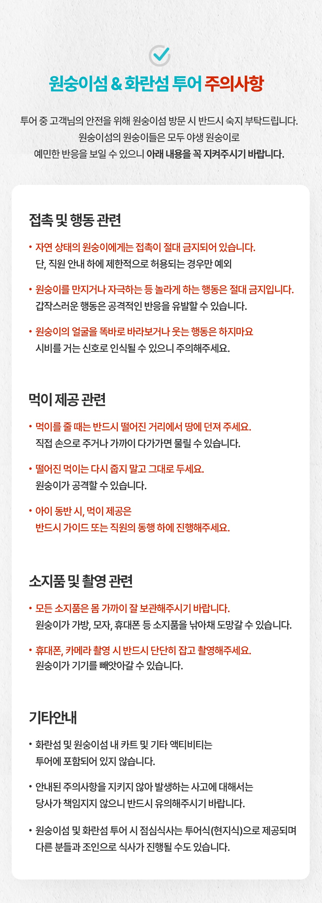 * 투어식은 투어 자체에 포함된 패키지 식사로 환불 및 변경 할 수 없습니다.