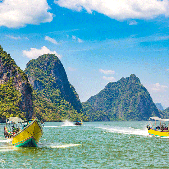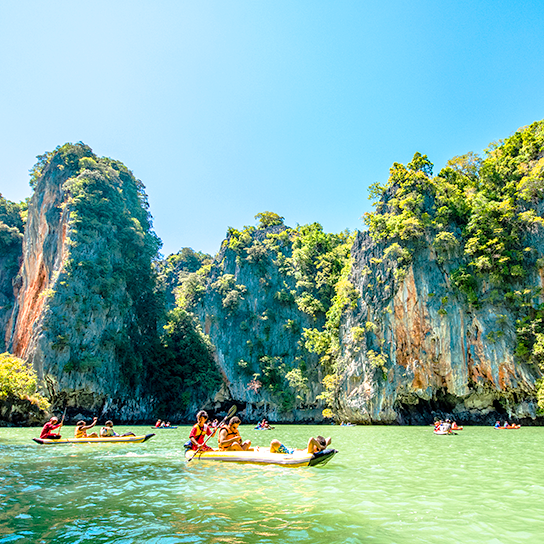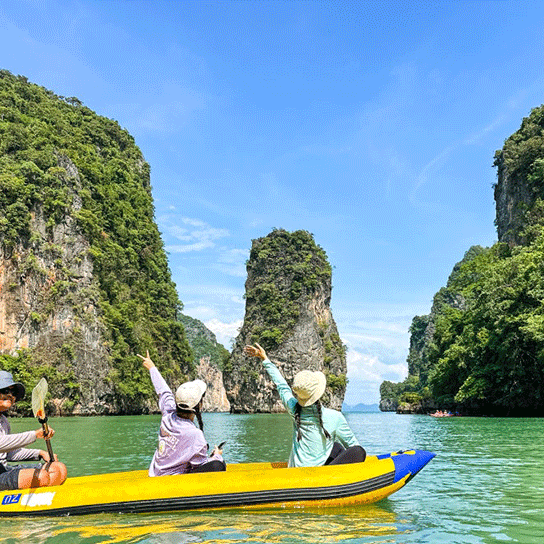 픽업(08:00) → 선착장>팡아만 해양 국립 공원 이동 → 파낙섬/홍섬 카누 투어→ 점심식사(현지식) → 제임스본드 섬 자유시간 →선착장 복귀(16:00)→ 숙소 드랍