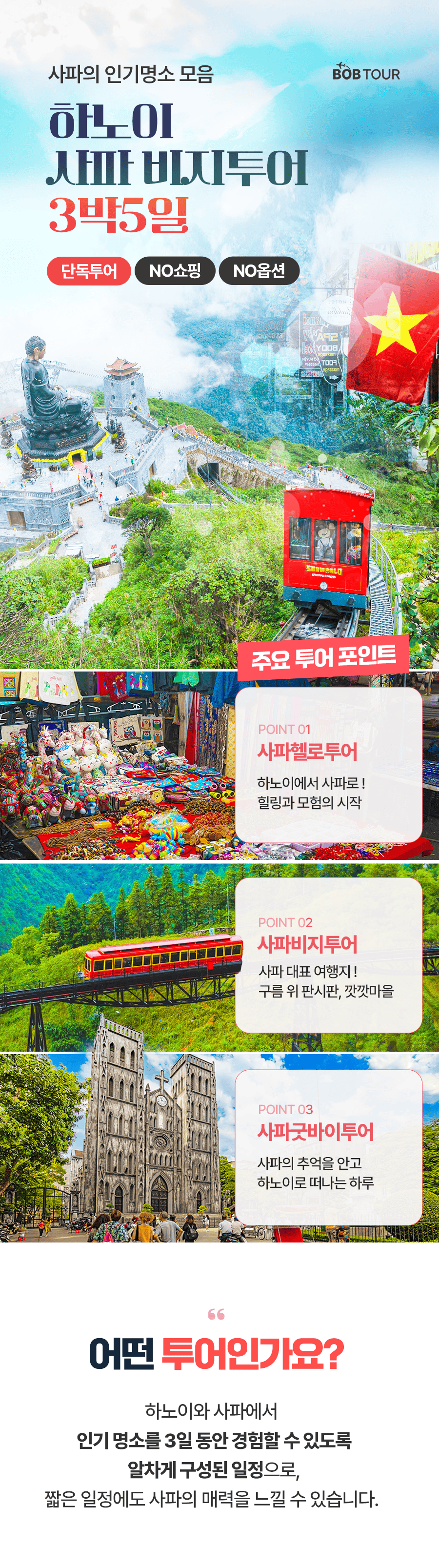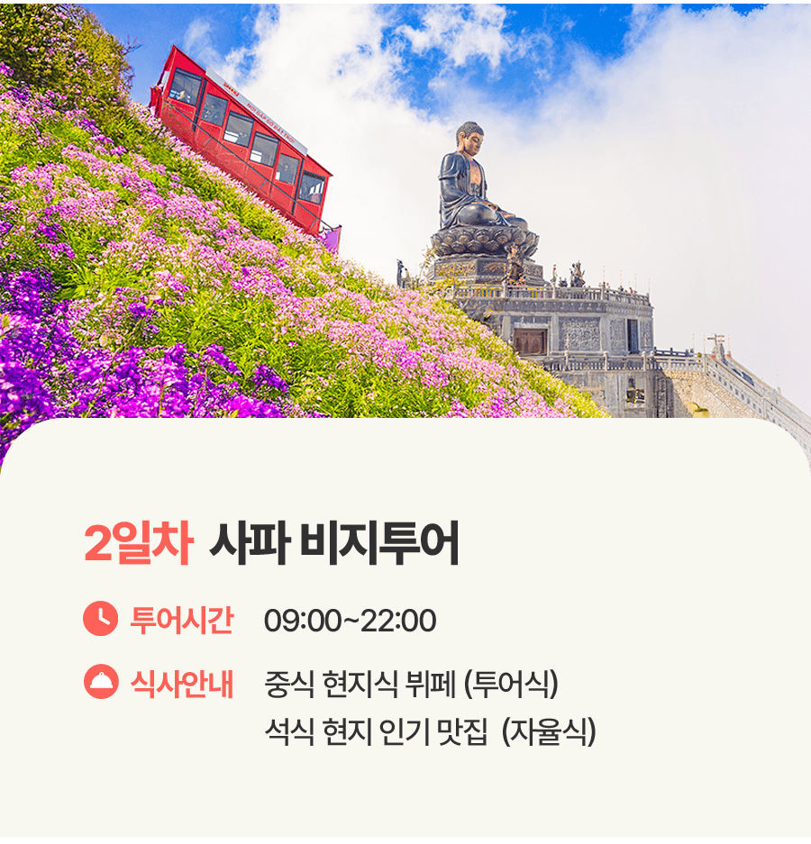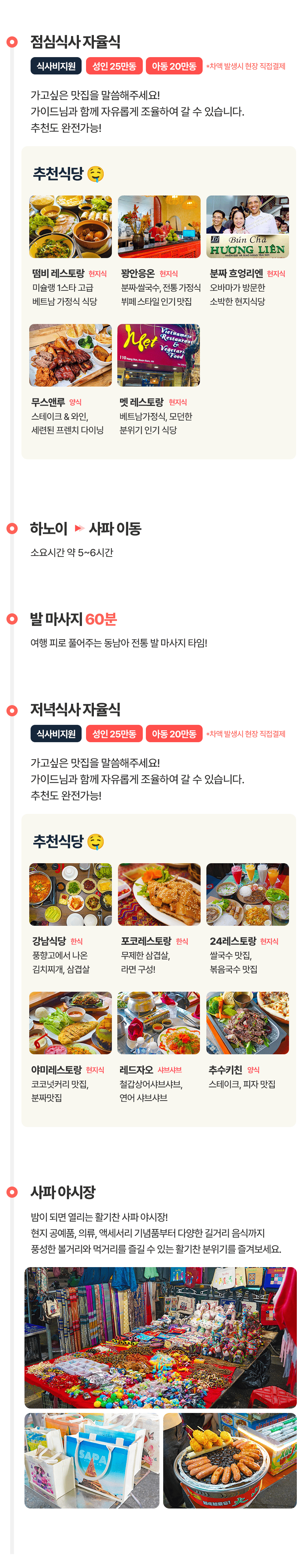 픽업(11:00) → 중식 → 사파로 이동(5~6시간) → 발마사지 60분 → 석식 → 사파 야시장 → 숙소드랍(21:00)