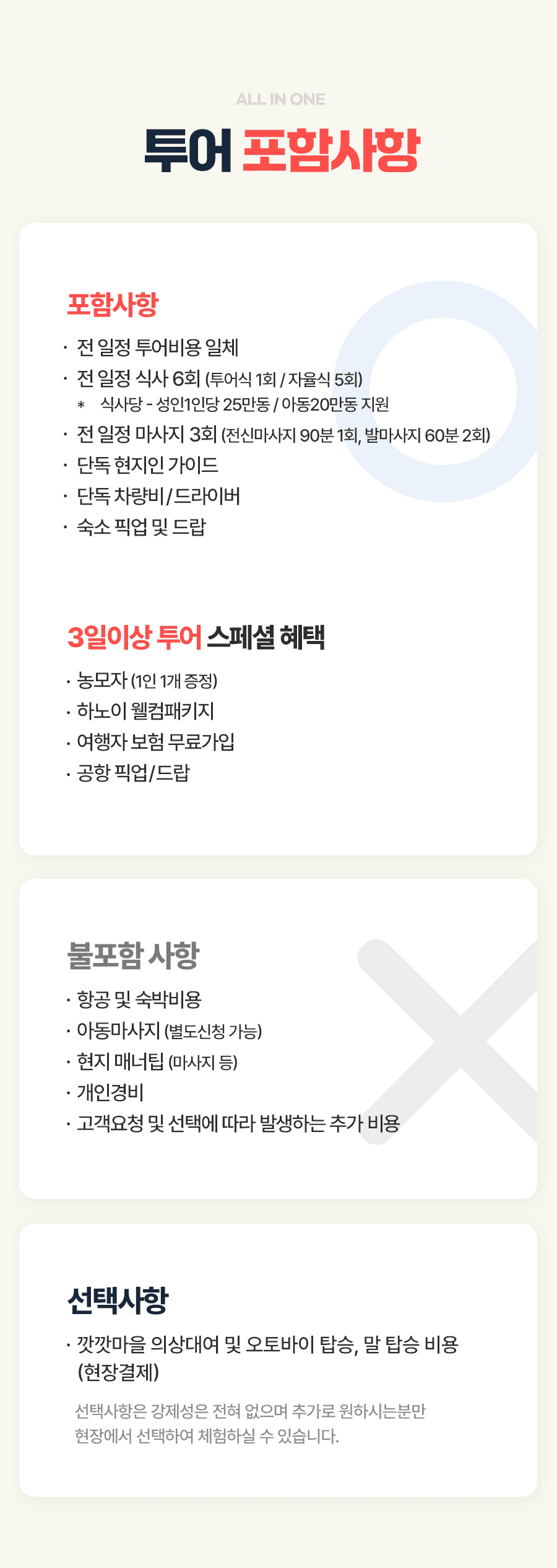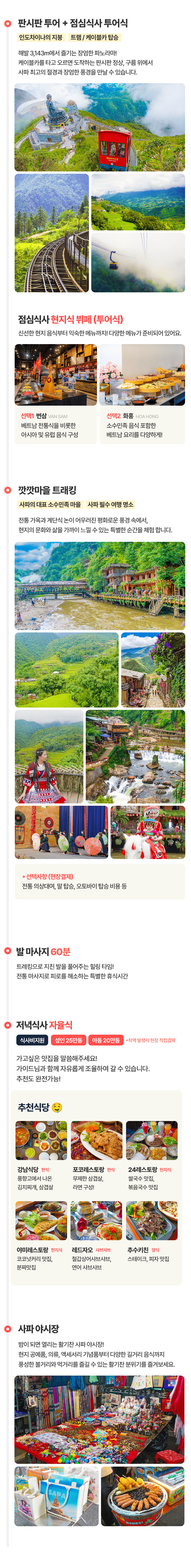 픽업(09:00) → 판시판투어 → 중식 → 깟깟마을 트래킹 → 발마사지 60분 → 석식 → 사파야시장 → 숙소드랍(21:00)