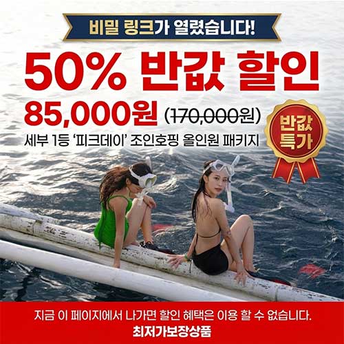 [50% 반값 비밀링크] 세부 필수투어 1등 선정 "피크데이" 호핑투어 올인원 패키지 (조인투어)
