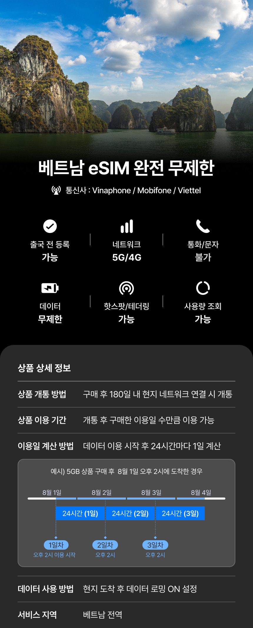 베트남 전지역 유심 사용가능
