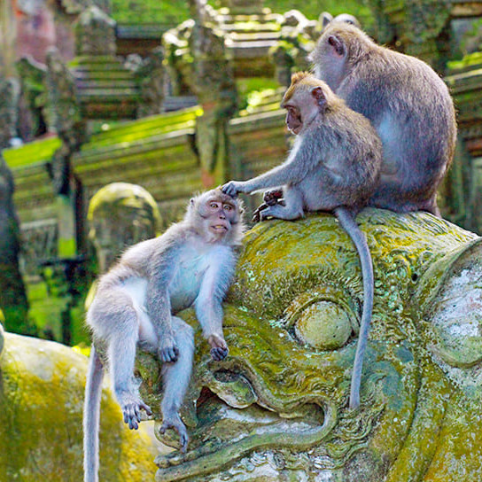 수목이 우거진 고대사원과 야생 원숭이의 만남!