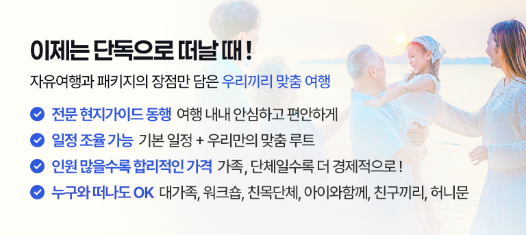 - 일정 중 식사 장소는 기존에 안내되어있는 곳(추천식당) 외에 상담사 및 가이드님과 조율을 통해 변경 가능합니다.