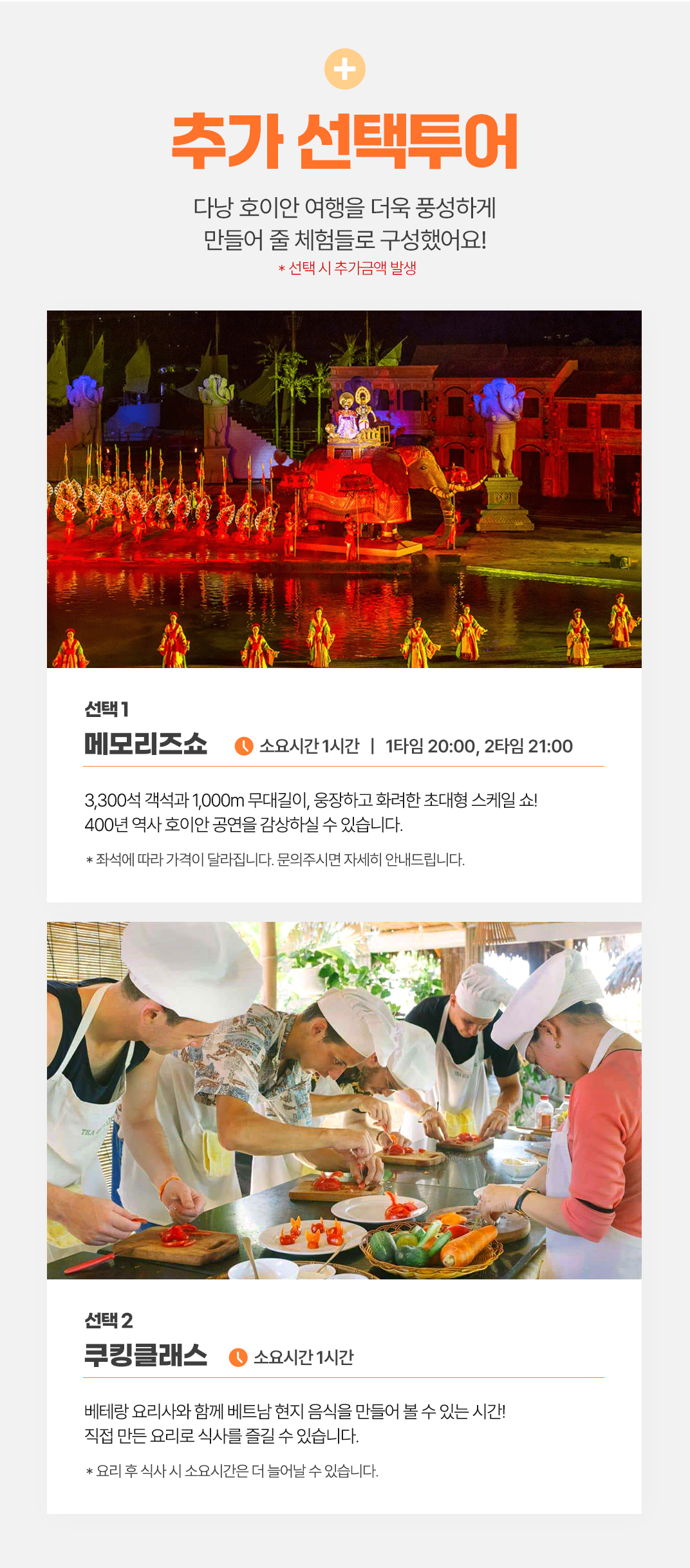 *추가선택투어: 메모리즈쇼, 쿠킹클래스