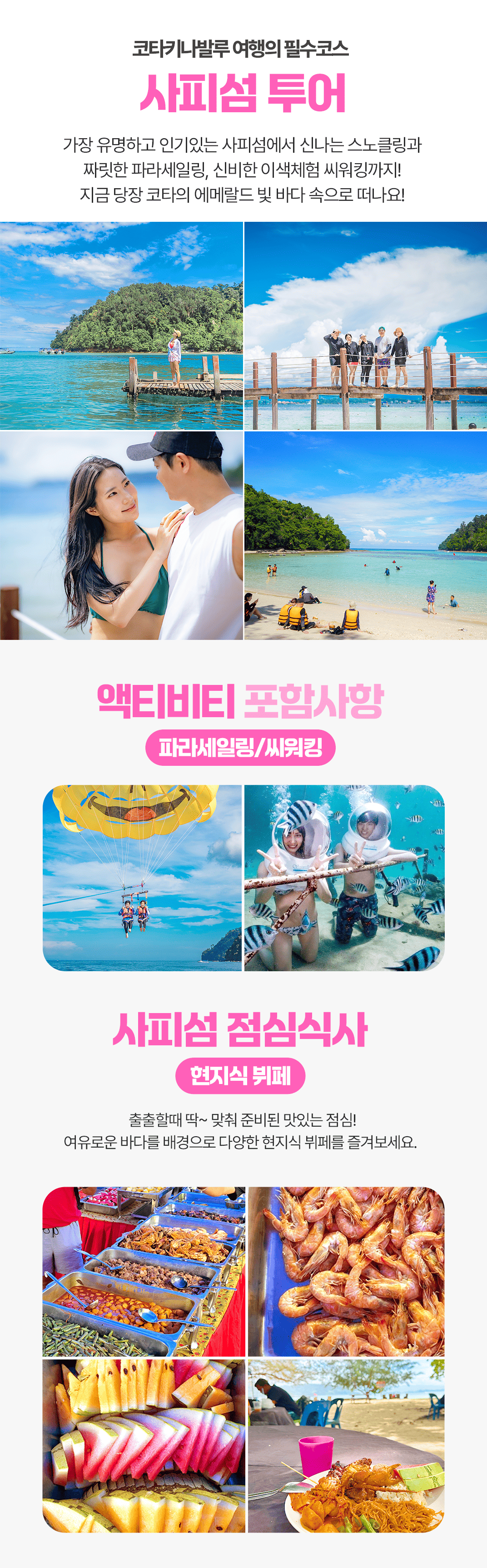 가장 유명하고 인기있는 사피섬에서 신나는 스노쿨링! 코타의 에메랄드 빛 바다 속으로 떠나요~